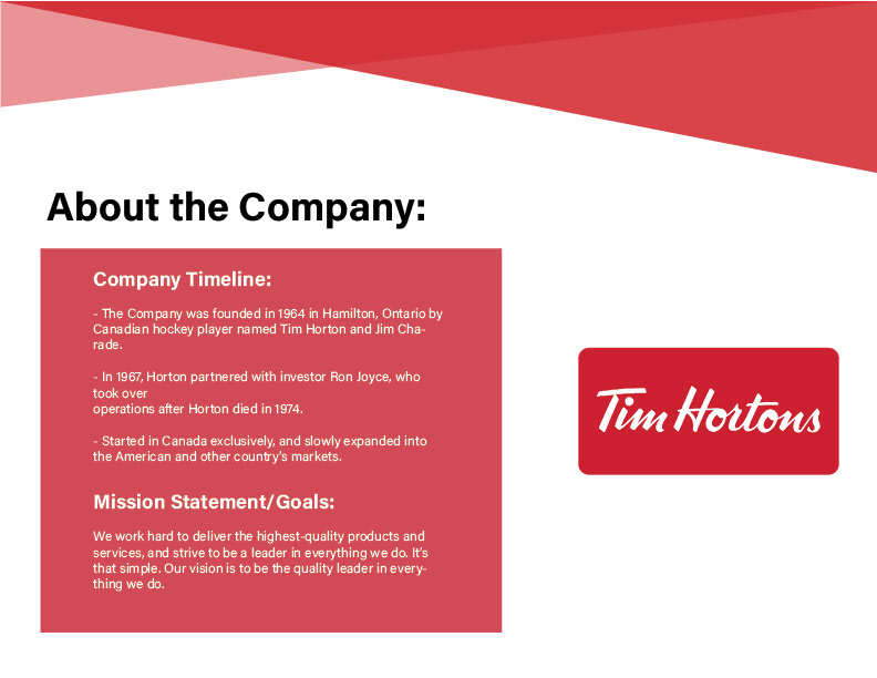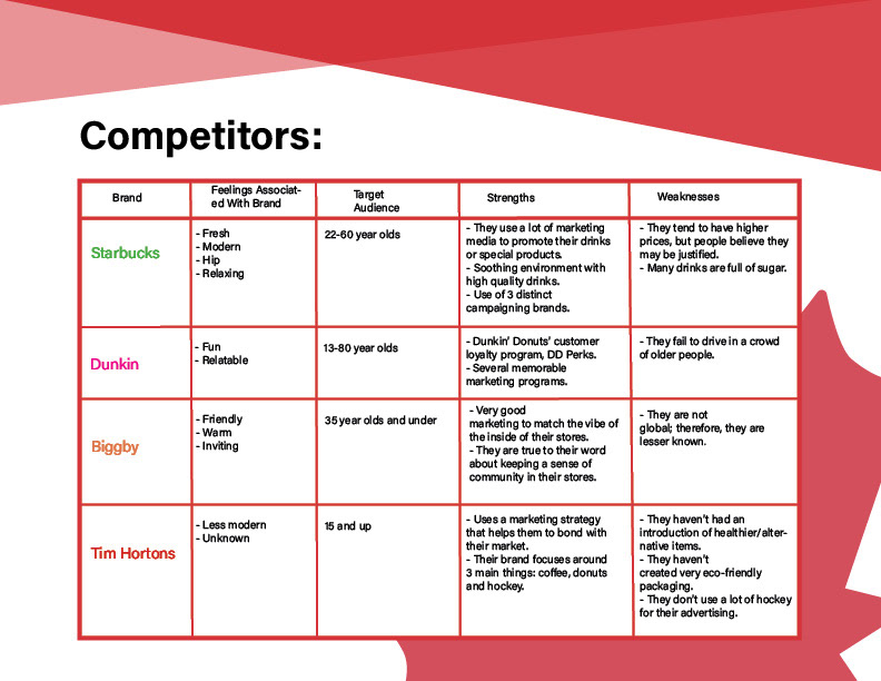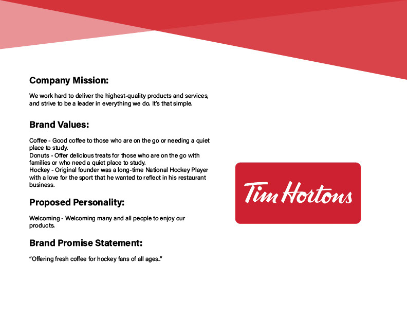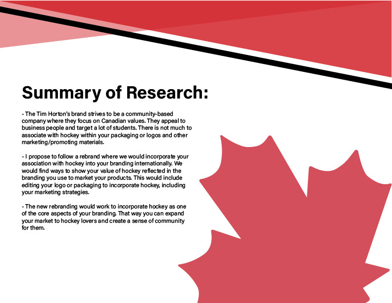 The goal of this project was to rebrand a company based on pain points in their current branding. In this project, I chose to rebrand the coffee company Tim Hortons.
